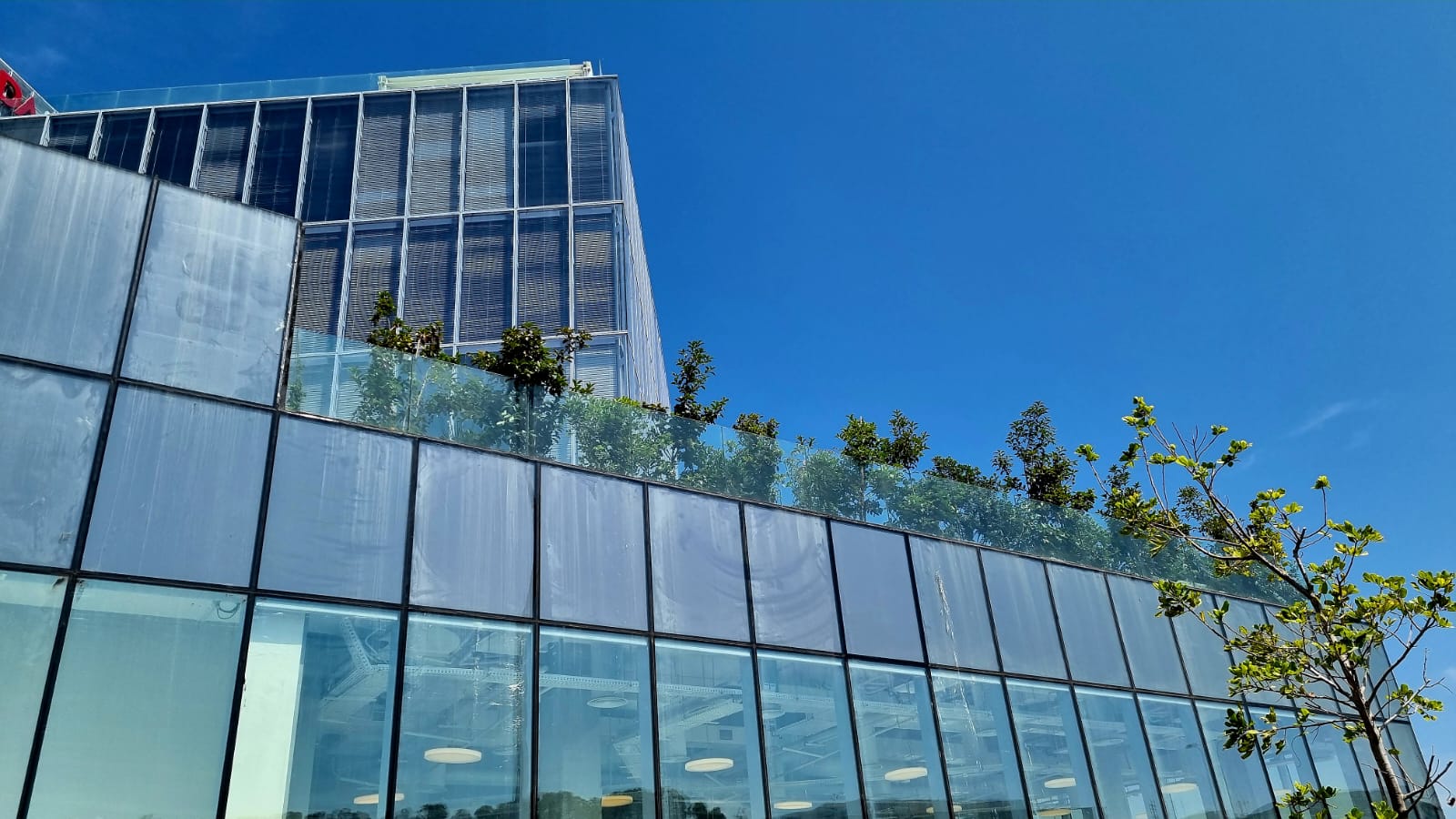 המבנה, סה”כ 60 אלף מ”ר, בנוי באופן שונה ממגדלי המשרדים הגבוהים והמוכרים. צורתו כשל מכולות המונחות אחת על השניה בהצלבה ובאופן המאפשר פיתוח סביבתי, יצירה של מרפסות וגינות לרווחת העובדים ואפילו מגרשי כדורסל. חיפויי הזכוכית מאפשרים חדירת אור טבעי מיטבית ומנקודות רבות במתחם ניתן לראות את הים וחלקו התחתון מיועד כולו למסחר אשר ייתאים לצרכי עובדי המתחם.